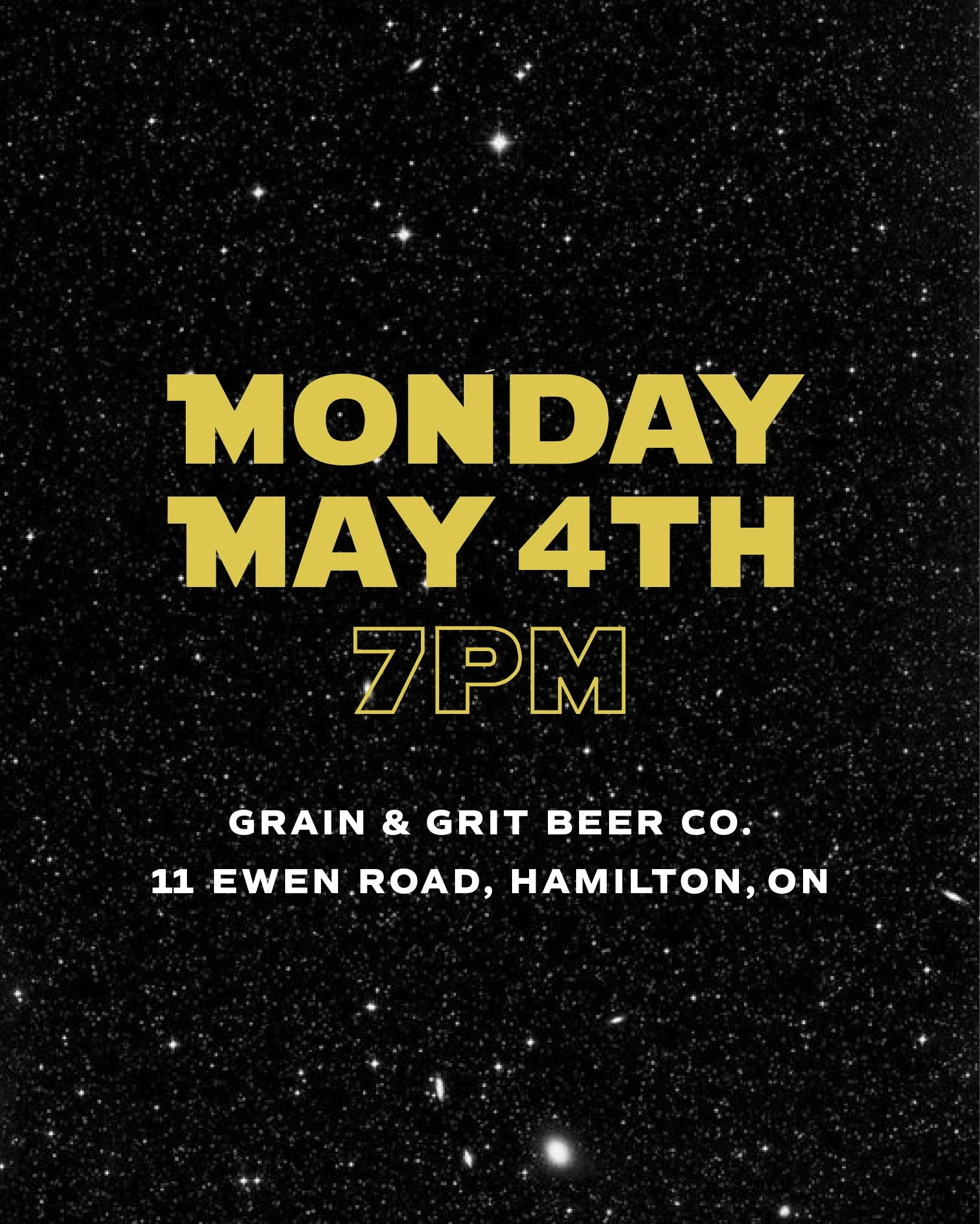We’re celebrating May 4th with Star Wars themed trivia on Monday at 7pm! Get in here to test your knowledge of the Star Wars universe. Tables are first come, first served, and don't forget to dress up as your favourite character to get extra points for your team.